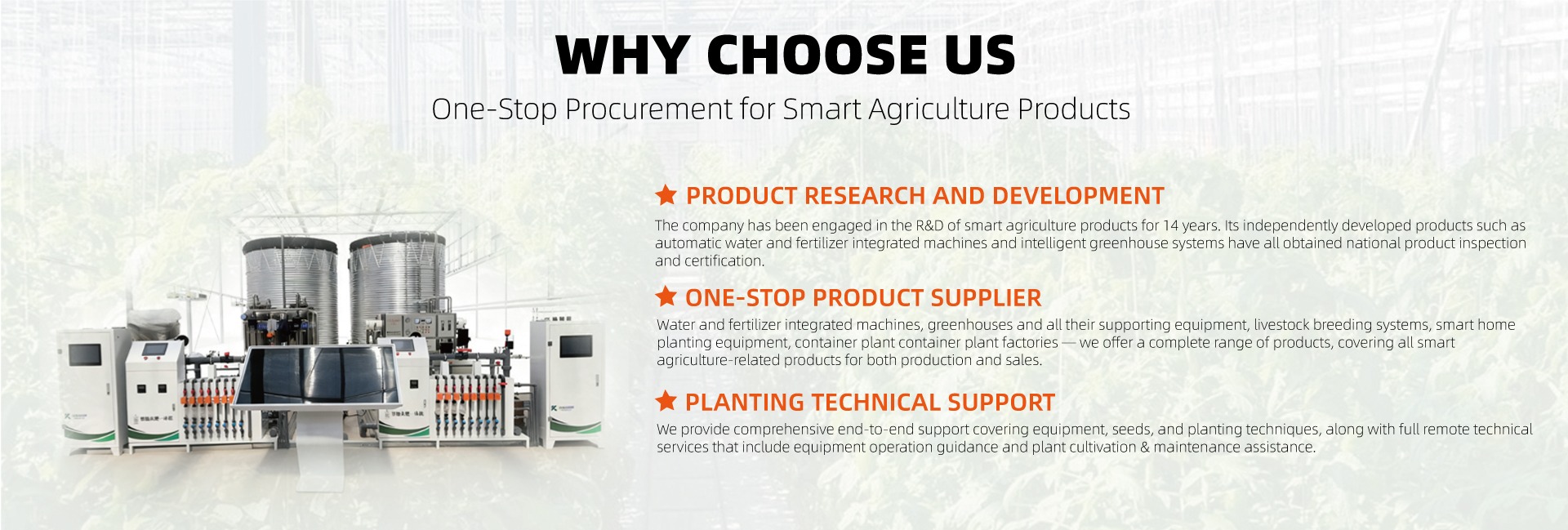 Produk utama: Integrasi air dan pupuk, rumah kaca penanaman tanpa tanah dalam kontainer, kabin penanaman, sistem kontrol lingkungan rumah kaca, pembersihan cerdas dan kabinet hidroponik oksigenasi